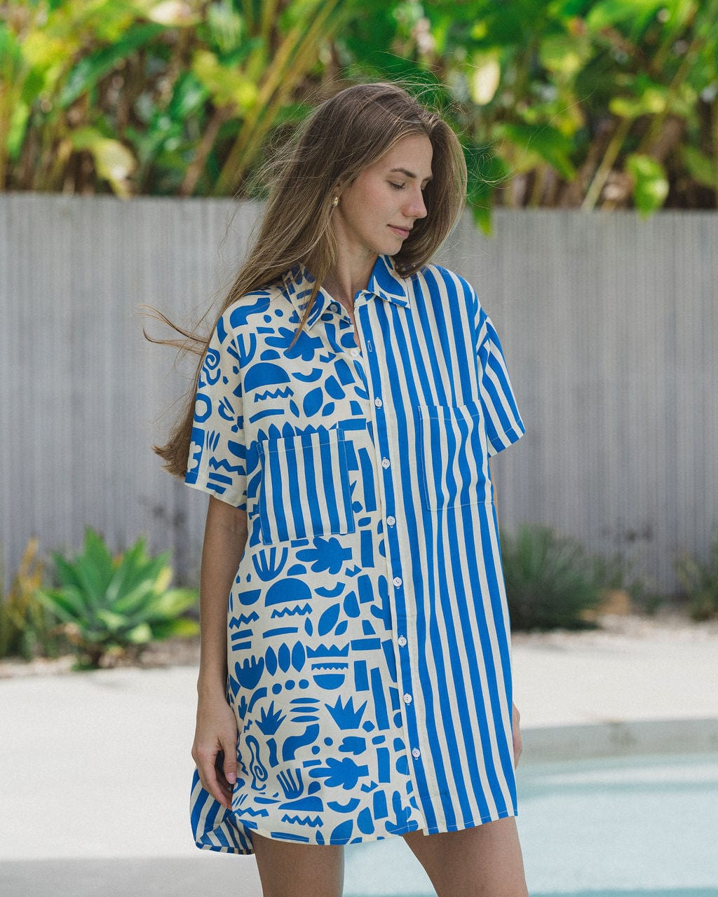 Geo Shirt Dress - Blue